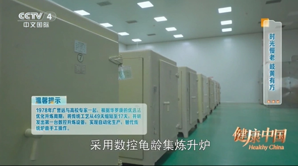 7月20日,中央电视台中文国际频道(CCTV4)《健康中国》栏目播出了以“时光慢老岐黄有方”为主题的节目。节目通过家庭互动、专家解读、实地探访三大板块,深入展现了龟龄集养生抗衰的深厚底蕴,揭示了其古老炮制工艺背后蕴含的现代科学价值。