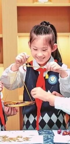 在江苏省泰州市某小学,学生体验称量中草药。新华社发
