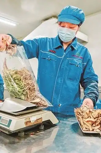 工作人员在宁夏隆德县一家药材加工企业分包当归。新华社发